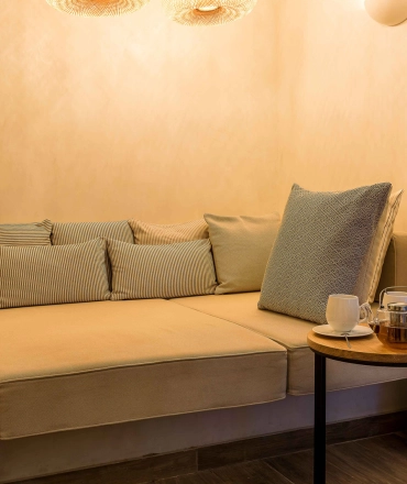 Comme une plongée dans les eaux de la Méditerranée qui s’offrirait en cadeau des suites d’une journée citadine rythmée, la piscine chauffée du LAZ’ Hotel Spa Urbain est accessible gratuitement à toute personne ayant réservé une chambre au LAZ’. Agrémentée d’un Spa avec Sauna, Hammam, un coin détente et une cabine de massages, son atmosphère hippie chic nous transporte de Saint-Lazare aux Baléares.